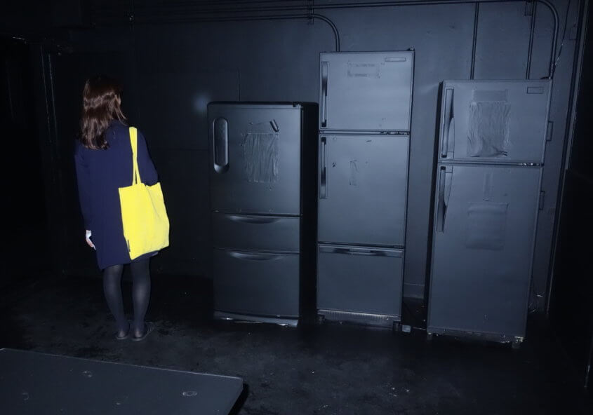 真ん中に見える小さい水槽は、天井の窓からの光をキャッチして黒から半透明に変化します。
